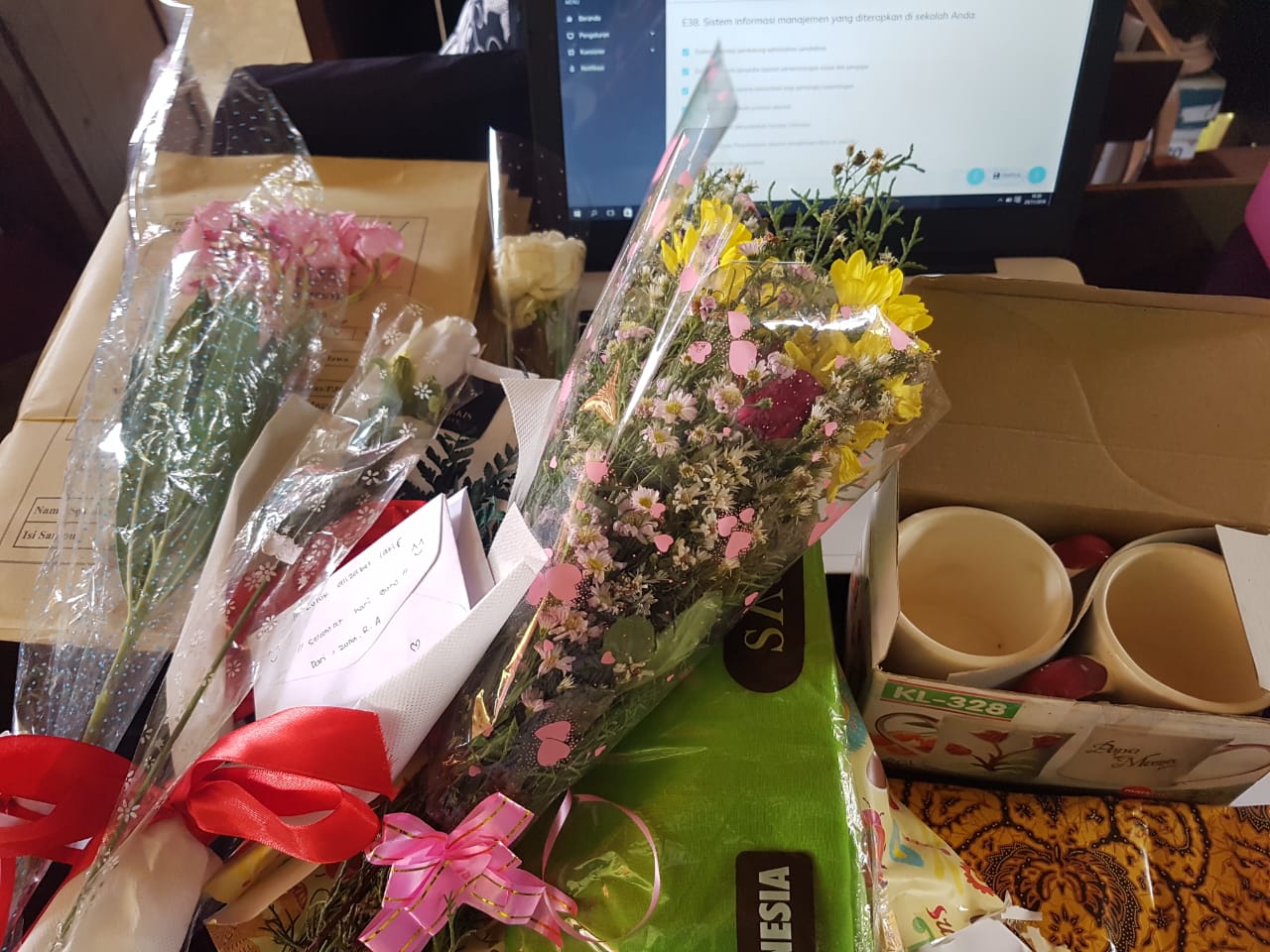 Sebagai ekspresi kecintaan anak-anak SD Negeri 2 Teras pada guru mereka mereka memberikan karangan bunga, dan beberapa kado pada gurunya secara tulus.